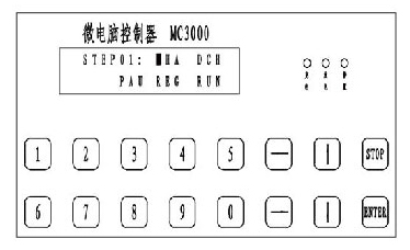 本充電機面板采用液晶顯示,設(shè)有電壓指示(電瓶充電),電流指示,充電 信號,電瓶電量指示,充電時間,充電狀態(tài)顯示,充電參數(shù)設(shè)定采用數(shù)字按鍵式 調(diào)節(jié)。